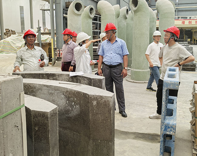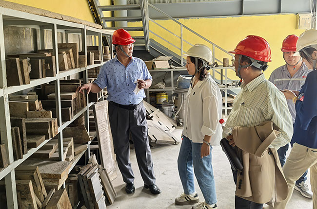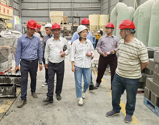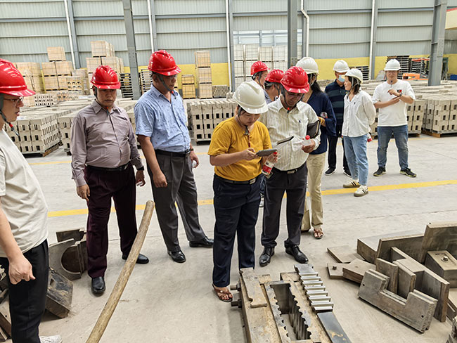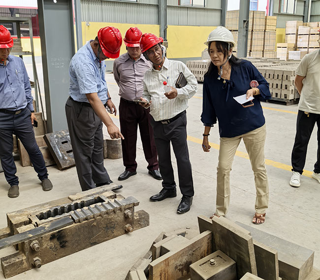 國(guó)外客戶(hù)參觀四季火耐火材料耐火預(yù)制件車(chē)間