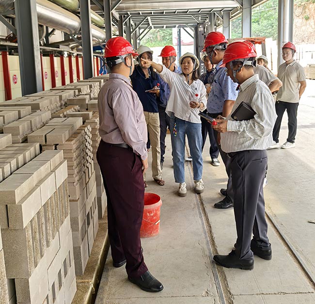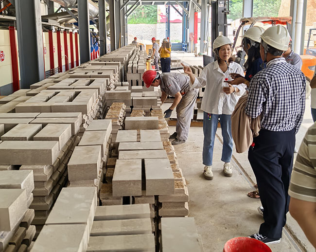 國外客戶參觀四季火耐火材料耐火預(yù)制件車間
