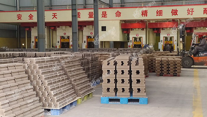 機械成型的高鋁耐火磚是通過壓力機壓制而成的。這種成型方式適用于大量生產(chǎn)和標準化產(chǎn)品。機械成型的高鋁耐火磚生產(chǎn)周期較短,強度較高,且生產(chǎn)成品率較高?。常見的壓力機設備包括 600T、800T和1000T等?。