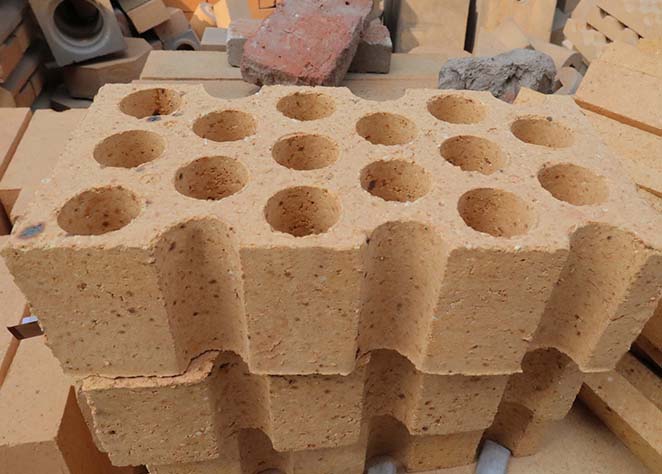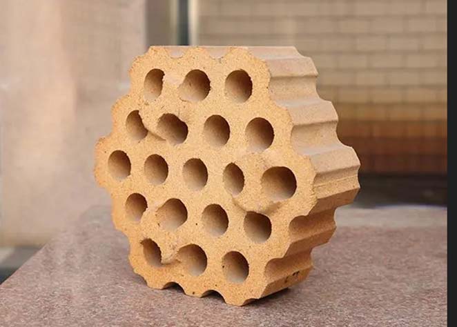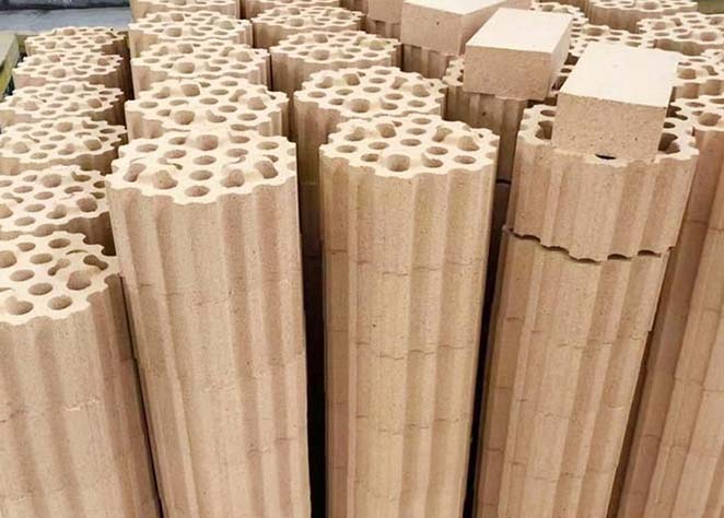 格子磚主要用在熱風(fēng)爐的蓄熱室里,由結(jié)構(gòu)一定的帶格孔的格子磚有序排列,格子磚上下通孔可任由氣體通過(guò)。根據(jù)不同溫度區(qū)域的技術(shù)要求,一般選用硅質(zhì)格子磚、粘土磚等,在一些熱風(fēng)爐里,也有選擇高鋁磚、莫來(lái)石磚、硅線石磚等。